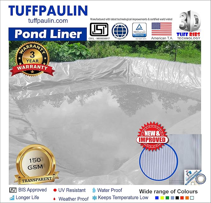The Tuffpaulin Pondliner is engineered with a 6-layer cross-laminated structure, making it 5X longer lasting than traditional 3-layer tarps. Completely seamless and stitchless, this Pondliner ensures unmatched durability and reliability. Whether it’s rain, snow, wind, or sun, Tuffpaulin’s waterproof and UV-resistant design offers robust protection against the elements, making it ideal for outdoor use.